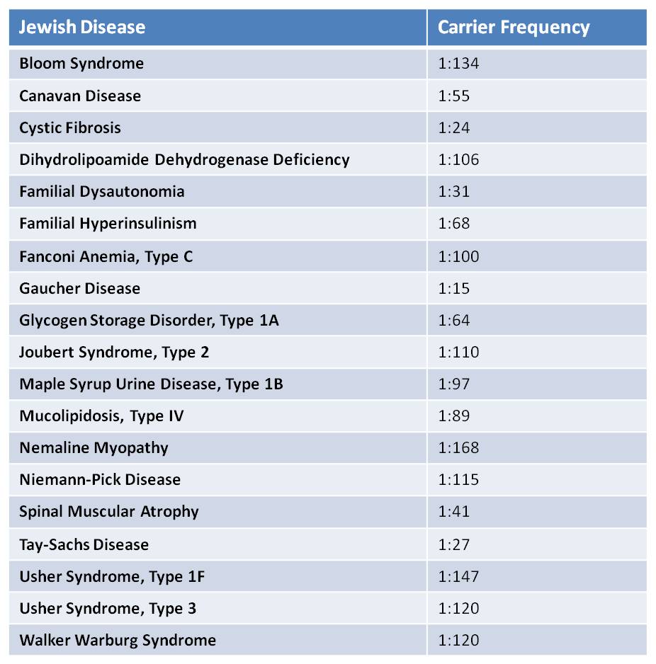 Table Adapted from: The Jewish Genetic Disease Consortium