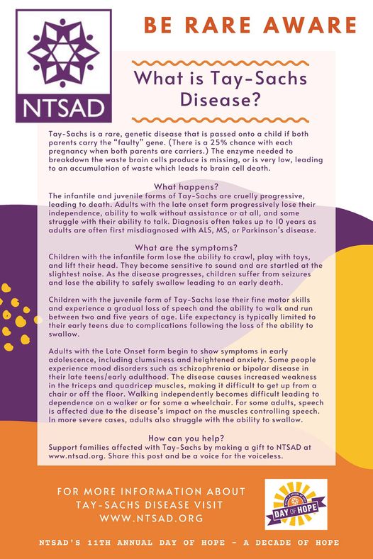 Anyone can participate in NTSAD’s Day of Hope to raise awareness and critical funds toward research for Tay-Sachs, Canavan, GM1, and Sandhoff diseases by creating a Day of Hope giving page.